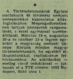 A Történelemtanárok (35.) Országos Konferenciájának állásfoglalása