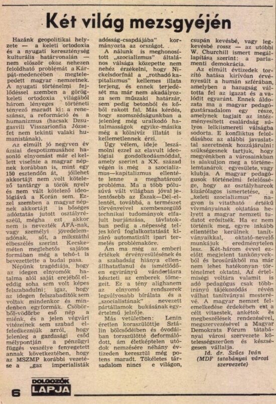 „… megyénkben a városainkban is alakuljon meg a történelemtanárok egyesülete…” – Dolgozók Lapja (Tatabánya)